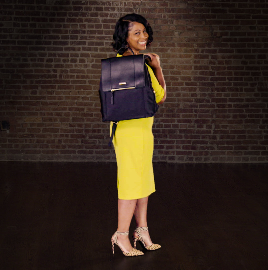 My name is Sherrill Mosee and I am from Pennsylvania. I used to run a nonprofit organization helping low-income moms in college pay for childcare. While working with the moms, I noticed they'd carried a diaper bag, book bag and small bag inside their book bag. I realized that I, too, like so many other women, carried a purse, laptop bag and lunch bag while commuting to work. It was cumbersome struggling with two and three bags every morning with everything I needed for the day. With no experience in fashion design, manufacturing or marketing, I decided I was going to design a bag that would separate my shoes from my purse essentials and my banana from my laptop.